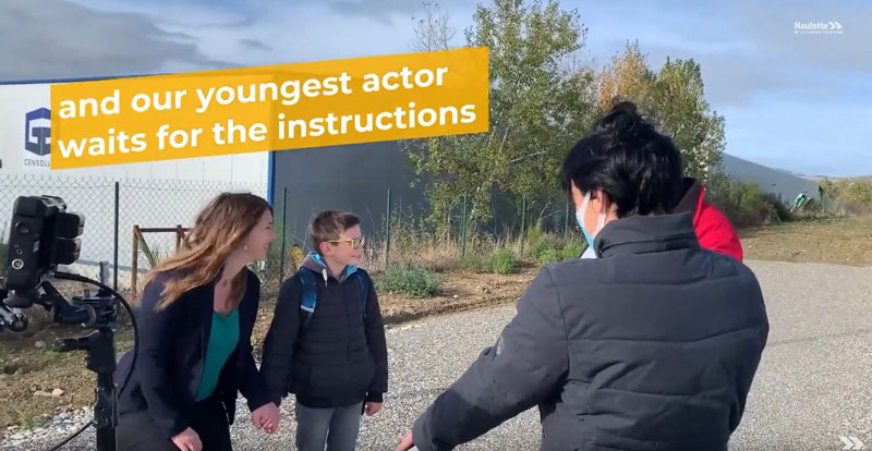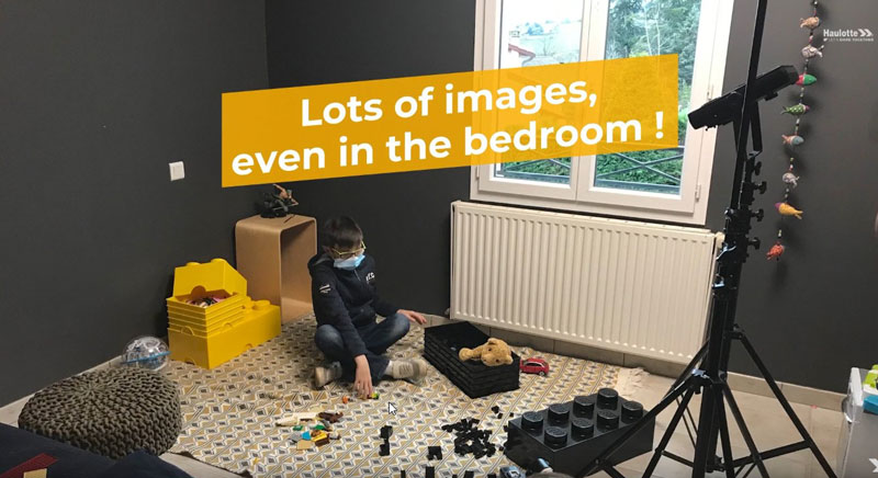 Thierry Granjon (Chef de Projet Technique Haulotte) : Le scenario a l’originalité de mettre en scène un jeune garçon construisant puis jouant avec une nacelle fabriquée à partir de briques à assembler. Nous sommes bien loin des standards de communication du secteur de la construction !