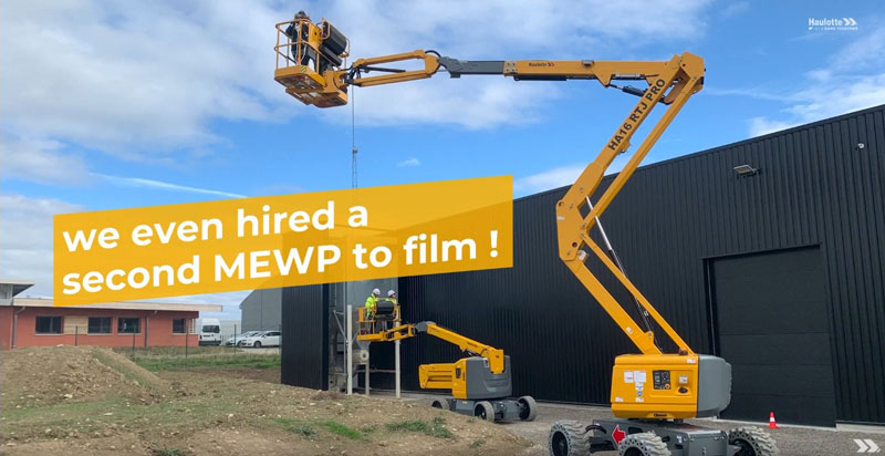 Thierry Granjon : Nous avons fait différentes prises de vue mettant en avant les performances machine. Pour ces plans, nous avons utilisé une autre nacelle, notre HA20 LE PULSEO, qui monte jusqu’à 20 mètres. Elle nous a permis d’embarquer le caméraman pour tous ces plans aériens.