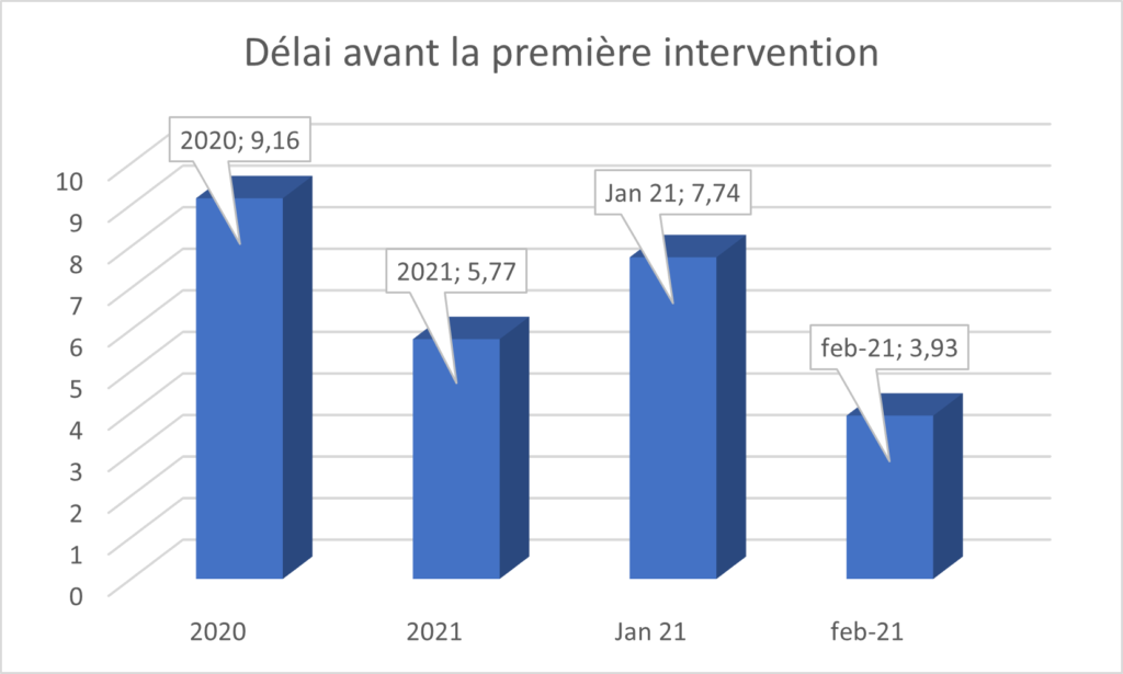 2021 a démarré avec un grand défi à relever d’ici la fin de l’année : améliorer la satisfaction de nos clients en atteignant un délai moyen de deux jours seulement avant la première intervention.