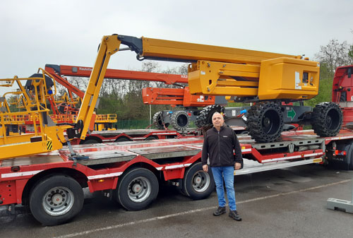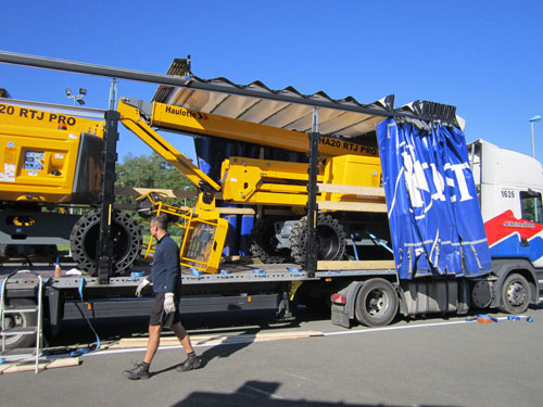 Depuis 10 ans la société de transports Cayons basée à Chalon-sur-Saône, nous accompagne sur de nombreux transports. Ce sont des spécialistes du convoi exceptionnel. Les chauffeurs sont des professionnels qui ont l’habitude de l’arrimage de pièces hors normes et disposent du permis CACES (l’équivalent international est la « PAL CARD ») pour les nacelles. Et ils connaissent bien les machines Haulotte. Cette connaissance nous assure une garantie de professionnalisme, de sécurité et de qualité. En termes de sécurité, nous n’avons pas le droit à l’erreur. On ne prend aucun risque sur l’arrimage et au moindre doute on ne chargera pas le camion. L’arrimage est assuré par nos soins, nous vérifions l’état du camion, nous chargeons la machine, la positionnons sur le porte-char en réglant la répartition de charge avec le chauffeur. Puis tout est vérifié avant le départ.