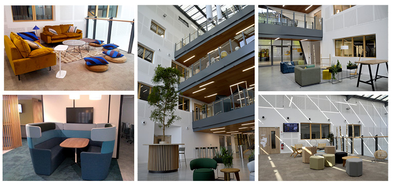 “Ce nouveau complexe a été conçu pour offrir à nos collaborateurs une qualité de vie au travail optimisée, en privilégiant les espaces de rencontres et d’échanges”, explique Stéphane Hubert, CSO du groupe. Les trois bâtiments portent chacun le nom d’une zone commerciale du Groupe : Europe-Afrique, Amériques, et Asie-Pacifique. Ces bâtiments offrent une alternance d’espaces collaboratifs formels et informels : bureaux de différentes tailles, salles de réunion multimédia, espaces de détente, grand restaurant, belle terrasse verdoyante, etc…